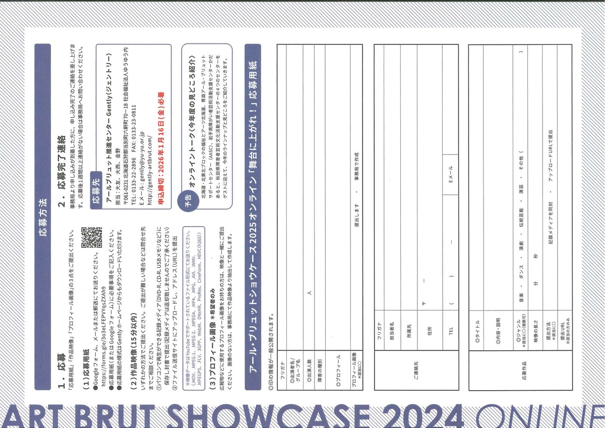 アールブリュット推進センターGentlyより、アール・ブリュットショウケース2025「舞台に上がれ!」のご案内がありました。