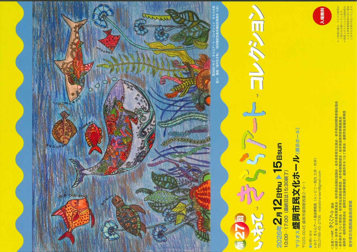 いわて・きららアート協会から、「第27回いわて・きららアート・コレクション」のご案内をいただきました。個性溢れる作品展に、足を運んでみてはいかがでしょうか。詳しくはチラシをご覧ください。
