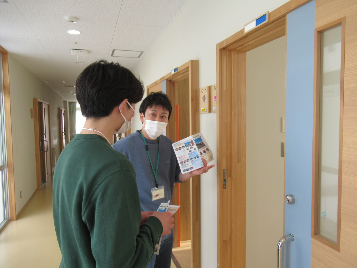 令和8年1月23日、仙台大学体育学部の方1名に、「1day仕事研究」に参加いただきました。障害者支援施設「みたけの杜」の施設見学や概要説明に加え、日中活動を体験したり利用者(児)と触れ合っていただきました。
