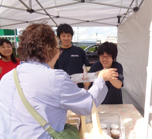 9月23日に開催された「いわて花巻空港スカイフェスタ2025」に出店し、花巻銀河珈琲とオリジナル菓子の販売を行いました。当日は、天候にも恵まれ、多くのお客様がご来場いただきました。利用者の皆さんは、商品の準備や接客に積極的に取り組み笑顔で販売する様子が見られました。