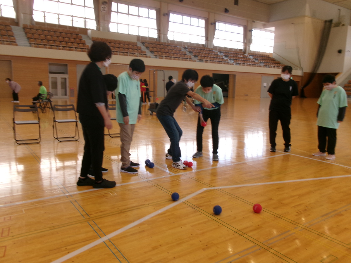 ボッチャは初めはボールが上手く投げられませんでしたが、段々に白いボールを狙って投げれるようになりました。