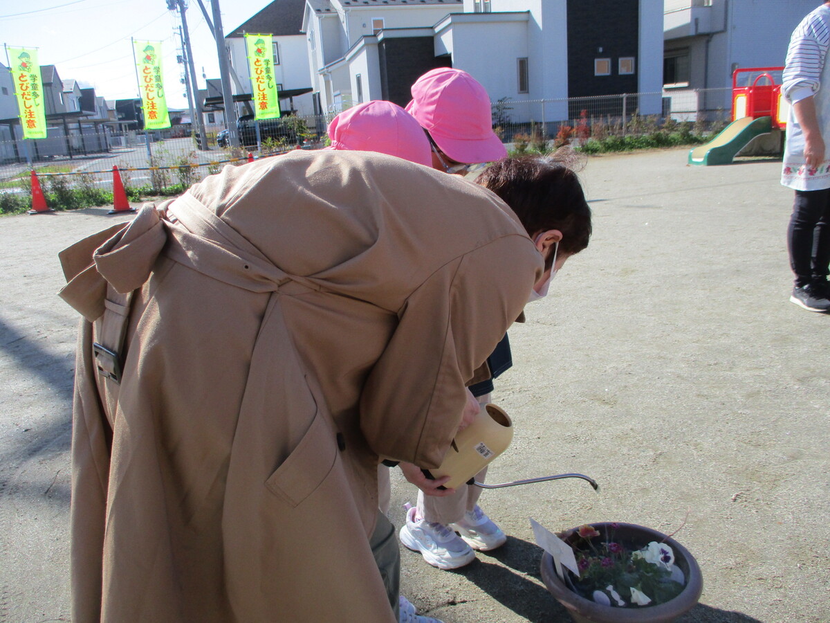 10月17日(金)にいしどりやこども園へお花を届けに行ってきました! 交流するにあたり、利用者さん自らお店に出向き花苗を選定しました。もみじ葉ゼラニウム、ダイアンサス、パンジーの3種類を鉢へ植え変え、交流当日まで欠かさずに水やりを行いました。 当日は天気に恵まれ、お花への水やりを通じて園児のみなさんと談笑するなど交流を深めることができました。