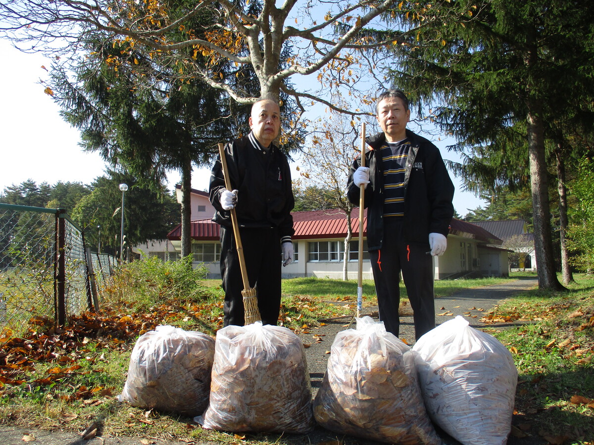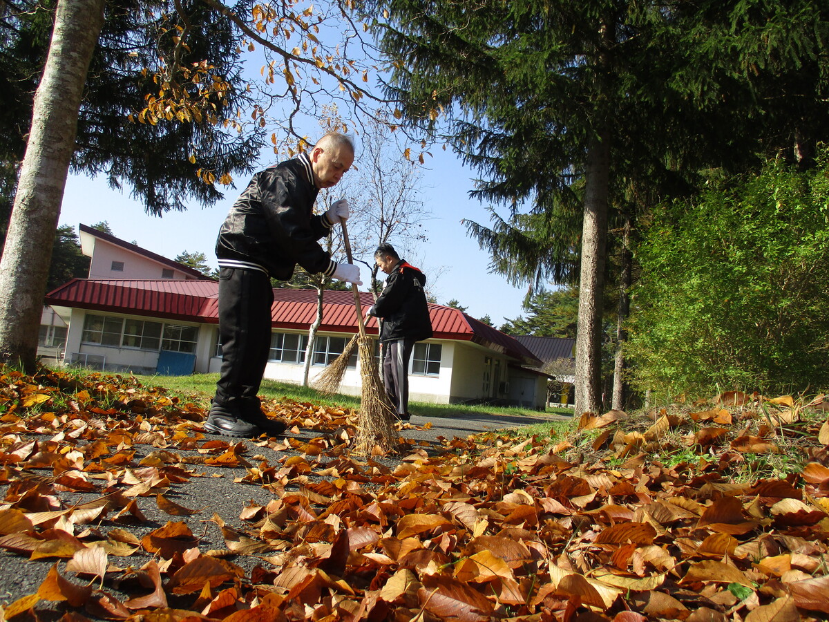 秋を通り越して冬?と思わせるようなここ数日の奥中山でしたが、10月某日、風がやや冷たいながらも気持ちの良い秋晴れとなりました。りんどう周辺を見渡せば落ち葉が大量に…せっかくだから体を動かして環境整備をと思い立ち、利用者さんに声を掛けたところ快く「いいよ!」と。始めてみれば思った以上の落ち葉の山で「疲れたね。」と手を止め弱音を吐きながらも、ゴミ袋4袋分の落ち葉を集め、遊歩道はひとまずスッキリ!きれいになった遊歩道を腰をさすりながら眺め、達成感を味わっている利用者さんでした。