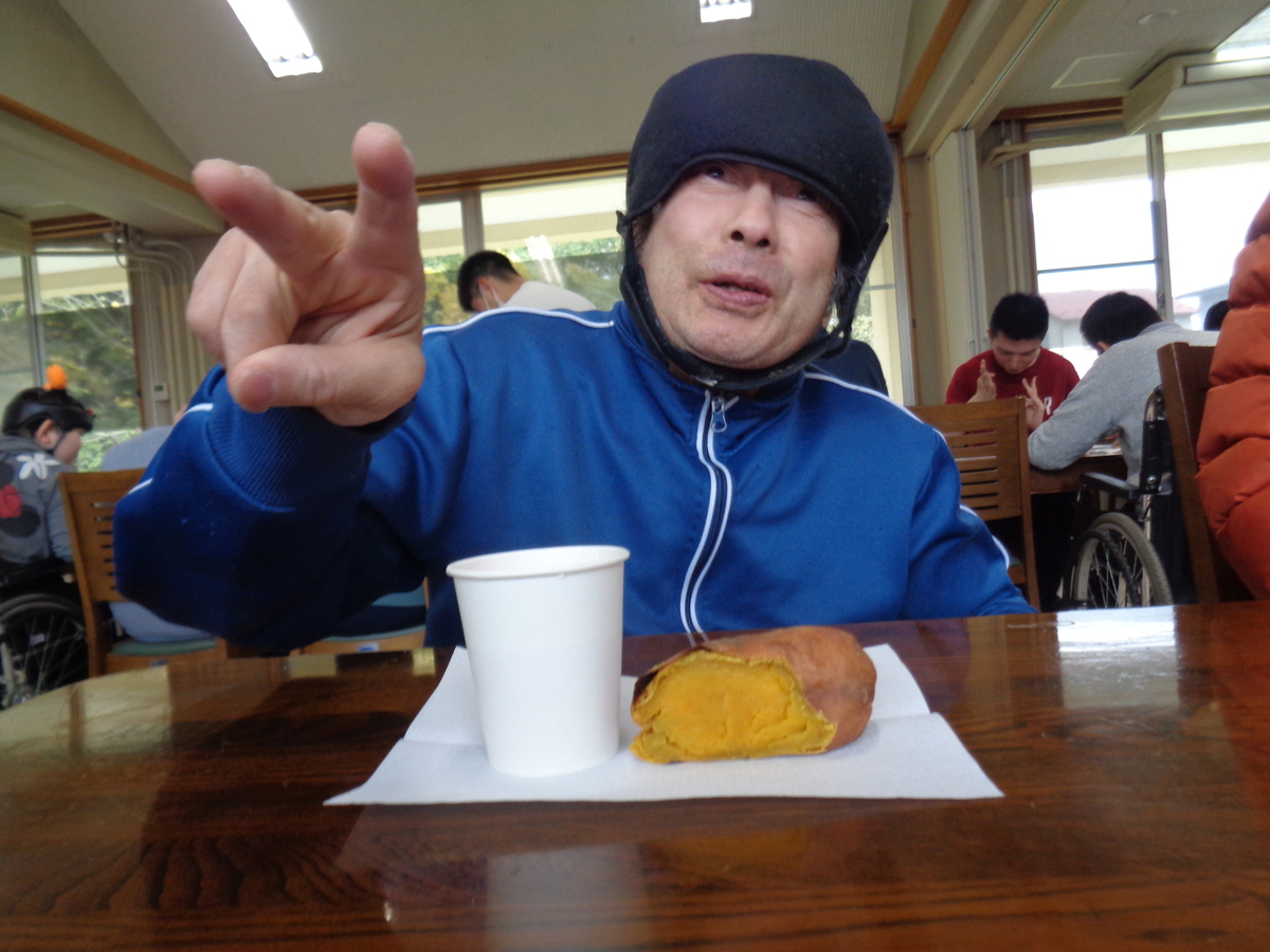 実りの秋、食欲の秋ということで、皆さん楽しみにしていた収穫祭。9月に収穫したさつまいもをいただきました。夏の間、利用者の皆さんが水やりや草取りを手伝っていただいたおかげで大きく立派に育ったさつまいも、と~っても甘いやきいもになりました!一口頬張りおいしさに思わず笑顔、ハロウィンの季節感も感じながら、楽しいひと時を過ごした皆さんでした。