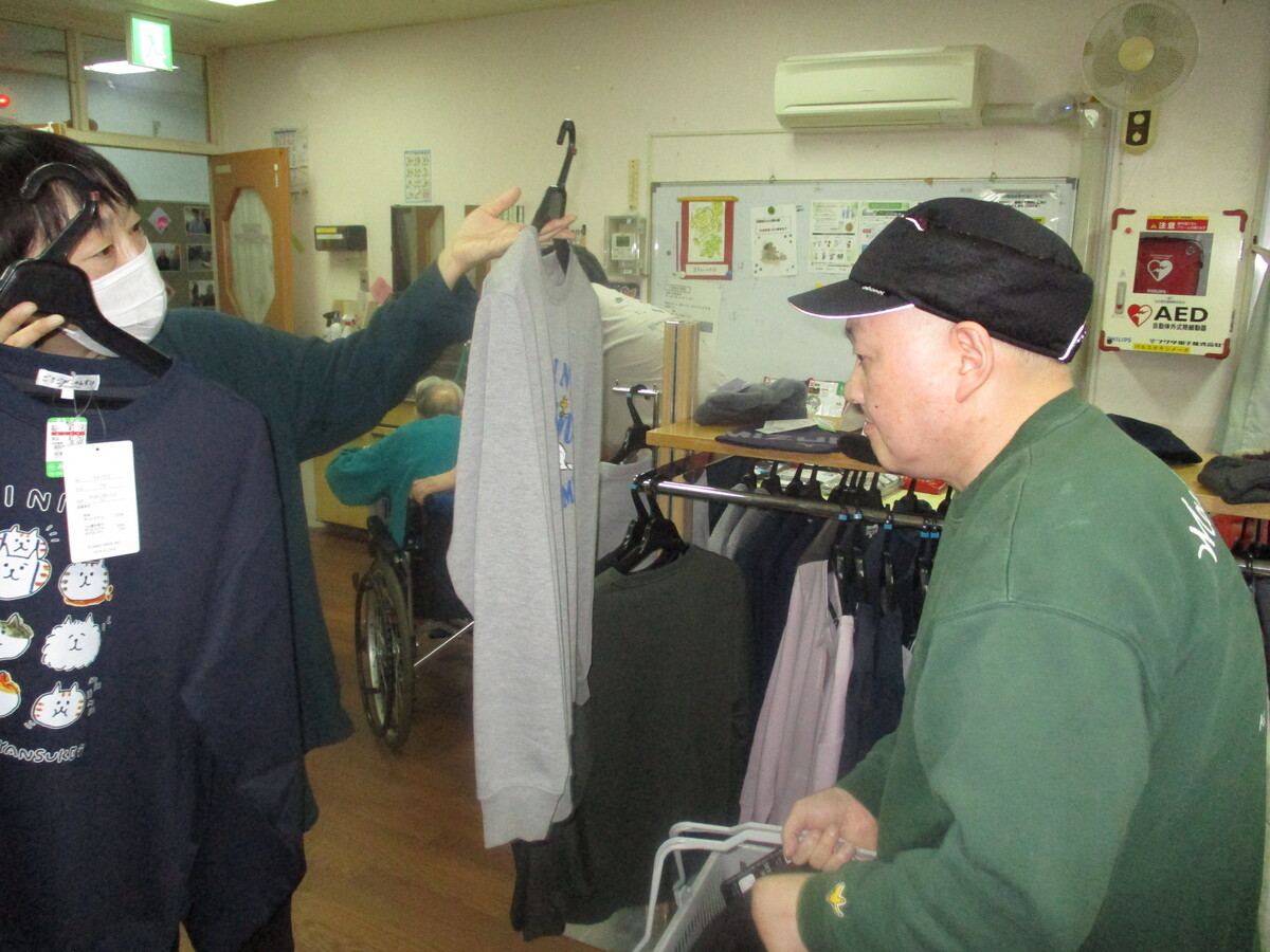 11月26日、りんどう恒例の「わくわくストア」今回は盛岡市の「みかわや」さんに移動販売で来所いただきました。今回は冬物を中心にわくわくの品揃え!即決で手に取る方、悩んで悩んでようやく決める方さまざまでした。男性も女性も笑顔で洋服などを選びわくわくするひとときでした♪ ※パートⅡにつづく…