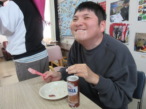この日のハッピーフライデーではクリスマス会を行いました。ジングルベルの曲に合わせて歌とダンスを楽しんだ後は、サンタクロースとトナカイが登場!ハーモニカを吹きながらの登場に会場は大いに沸きました。最後はケーキとジュースで乾杯し、皆さんにっこり笑顔で食べていました。