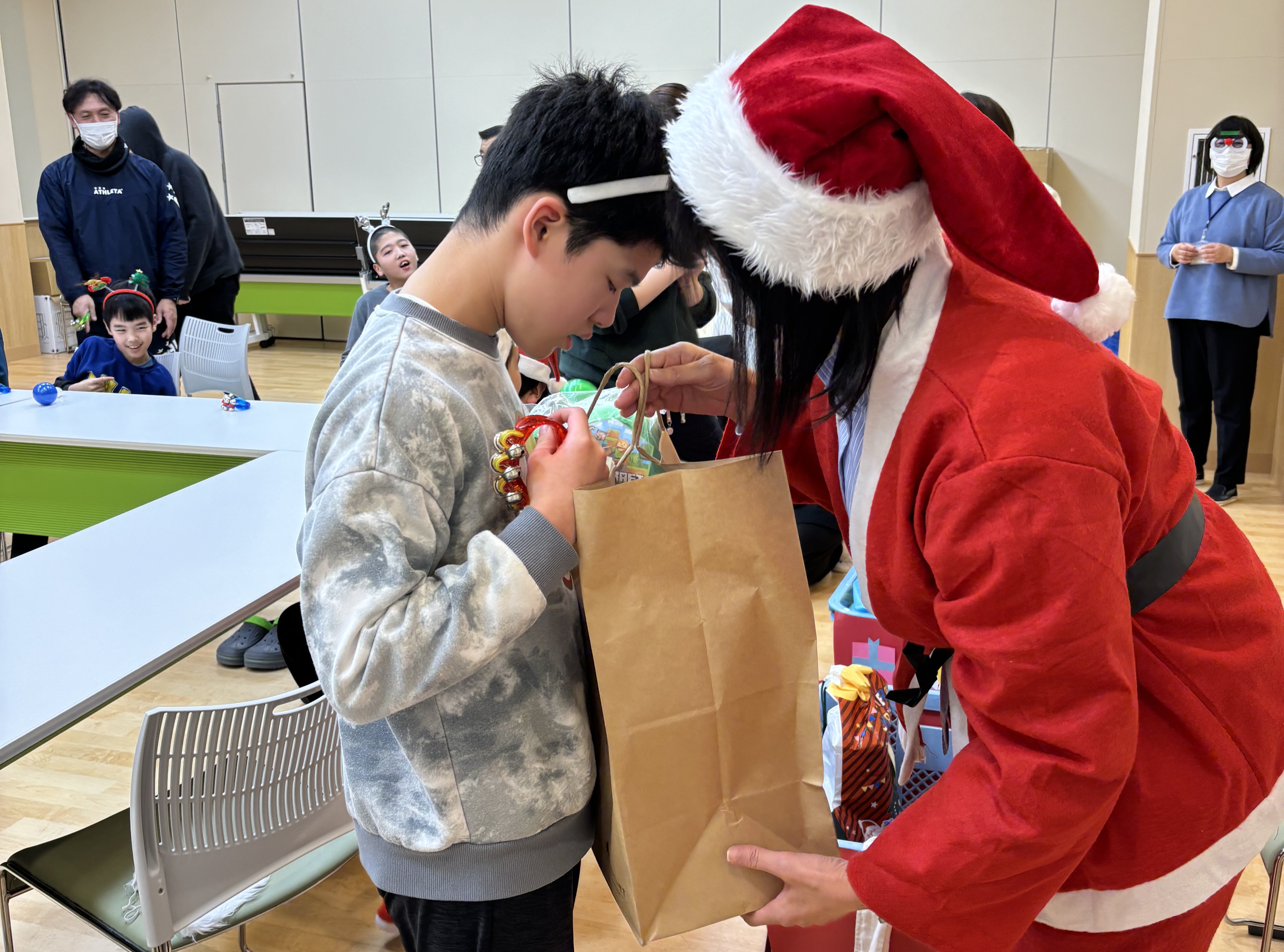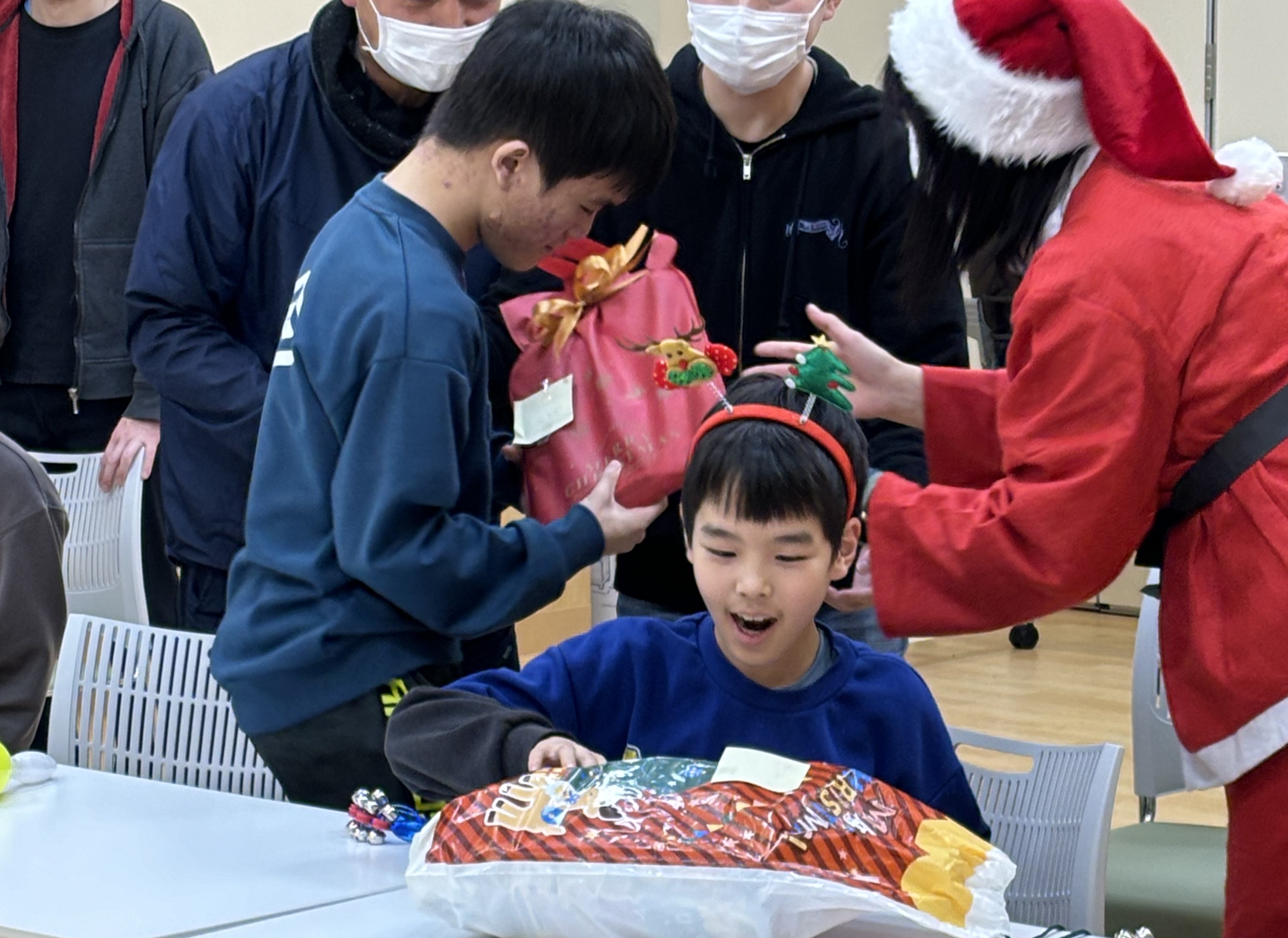 【てしろもりの丘よつば】彩ユニット クリスマスパーティー② 2026年01月06日掲載 何が入っているかな~? プレゼントをもらって大興奮! 楽しく歌を歌った後に、なんとサンタさんが登場!!利用者は驚きながらもとっても嬉しそうでした😊 1人ひとりサンタさんからプレゼントを受け取りました。 お知らせ一覧へ