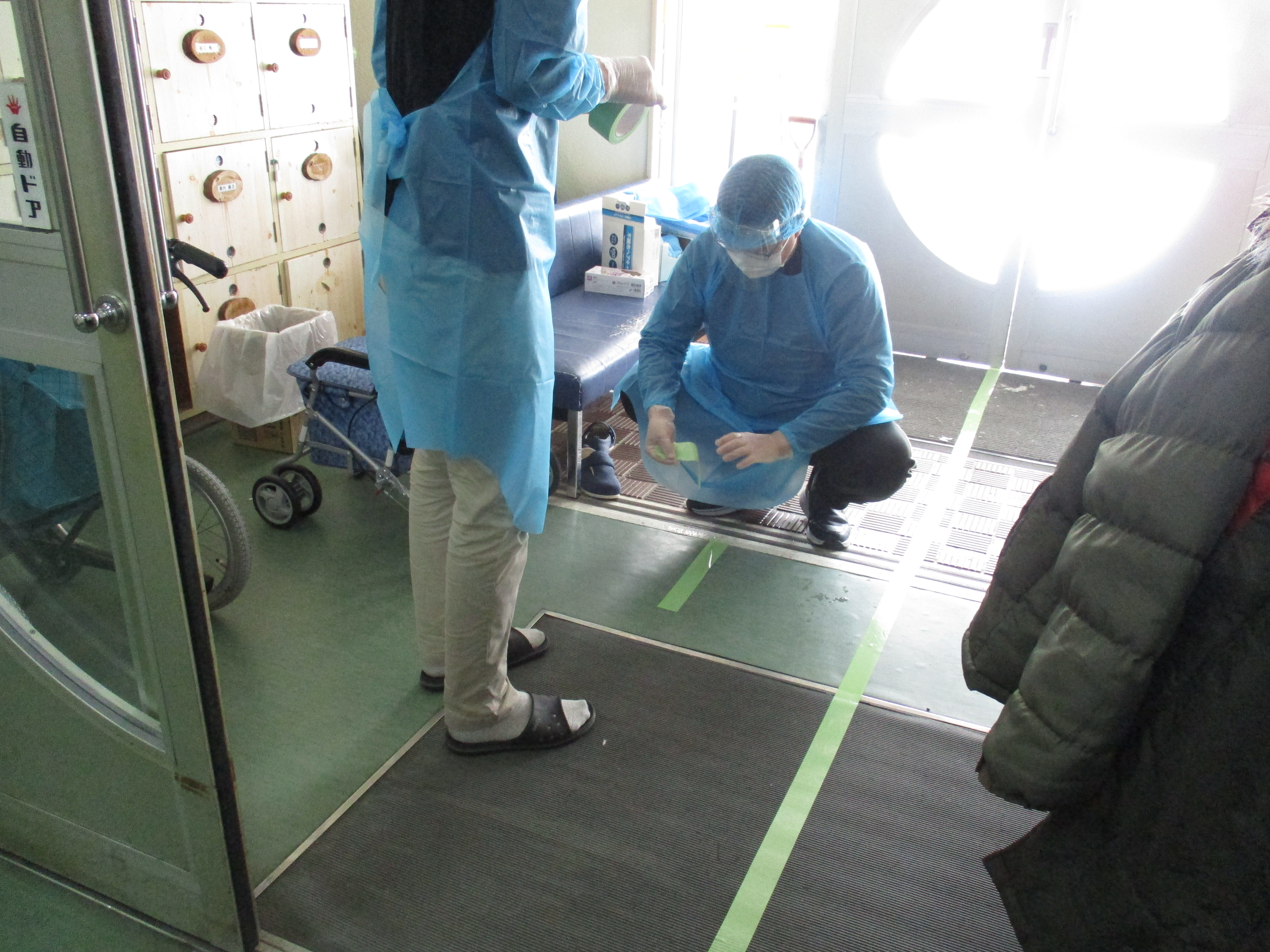 1/26(月)「BCP・感染対策訓練」を実施しました。感染症対策マニュアルを確認しながら「利用者がコロナ感染」を想定、防護服着用、利用者の体調確認、消毒、電話連絡、必要物品の準備等、実際に動いてみることで初動対応の重要さを再確認することができ、有意義な訓練となりました。まだまだ感染症が発生している時期ですので「継続した感染症対策」を意識し、日々のサービス提供に努めてまいります。