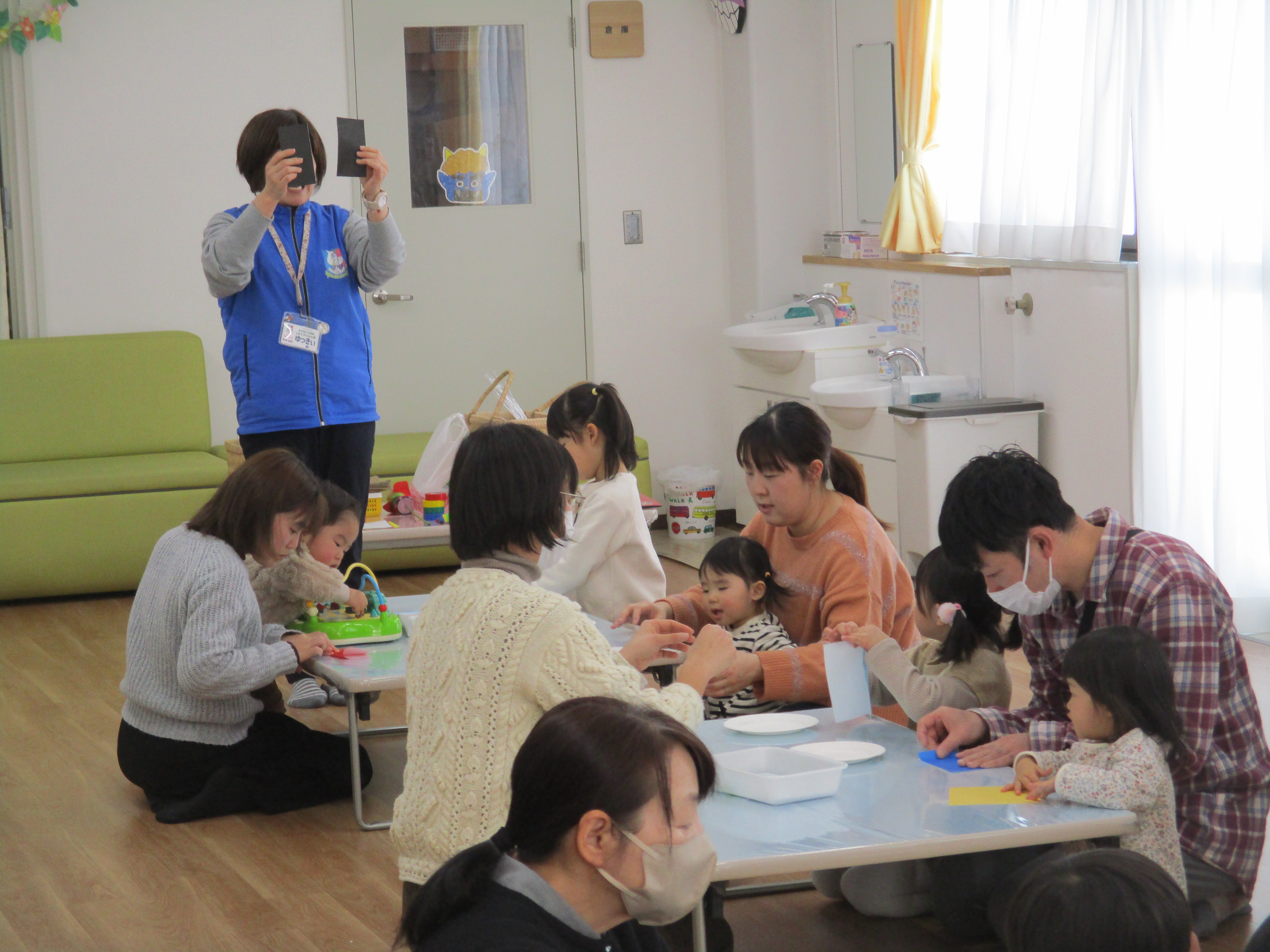 去る1月31日(土)におもちゃ図書館ふらねで「親子ふれあい交流イベント~あそぼう!つくろう!おもちゃ広場」を開催しました。一戸町の子どもの森のプレーリーダーのゆっきいと一緒に、0歳から5歳までのお子様9人とお父さん・お母さん11人が、わらべ歌遊びやリングトイ・手作りロケット・紙皿こまなどを作り、親子で元気いっぱい、楽しみました。参加された方から「あっという間の時間でした。年齢問わず楽しむことができました。また、参加したいです。」との感想をいただきました。ありがとうございました。