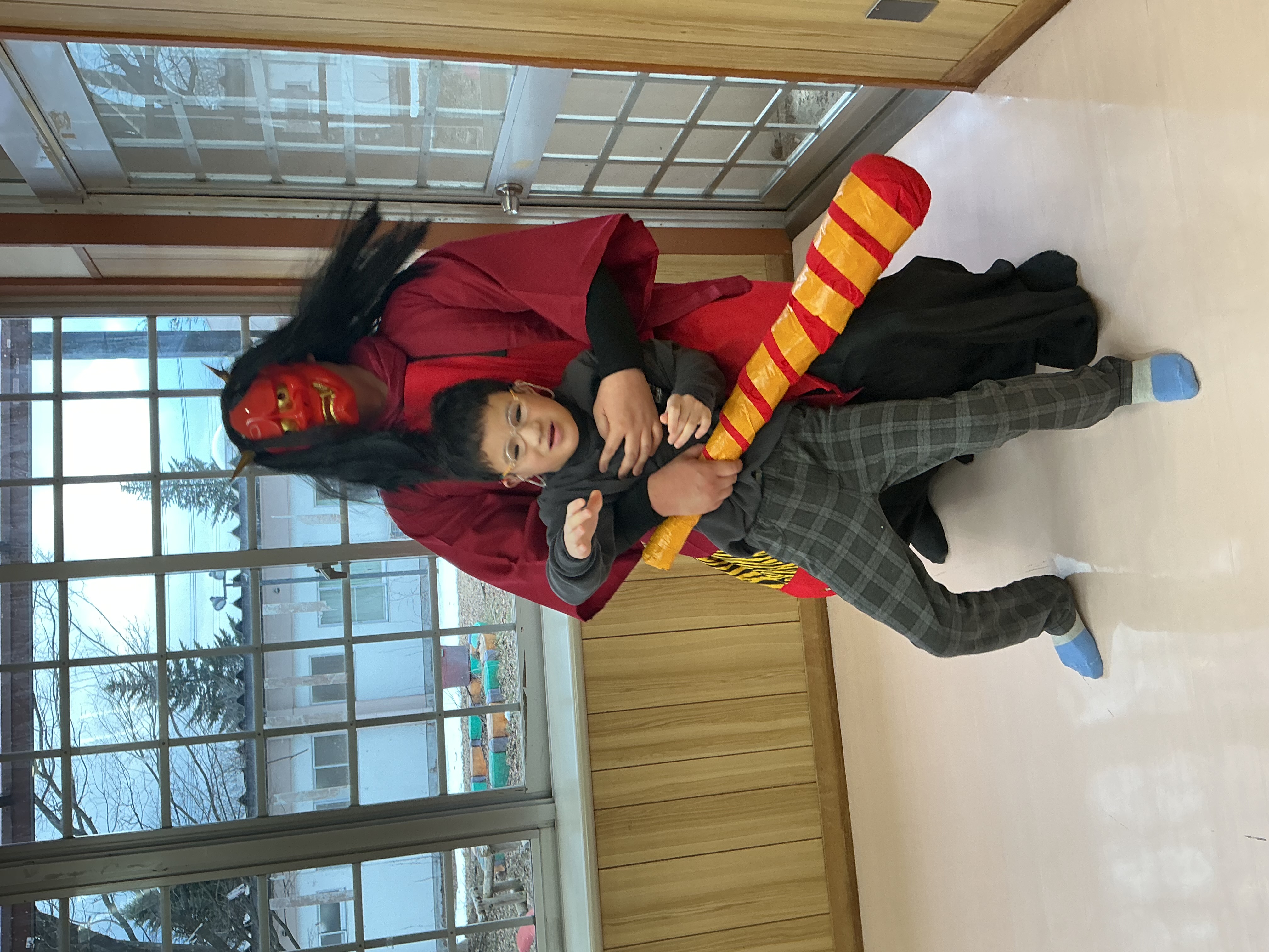 鬼は外!福は内! 2026年03月01日掲載 たすけて~!! いい子にします・・ 2月3日、節分。学園ではそれぞれの寮棟に赤鬼が登場しました。泣いて怖がる児童、笑いながら立ち向かう児童、豆を投げて鬼を追い払う児童、様々でした。自分の中の悪い鬼も、退治できたでしょうか・・? お知らせ一覧へ