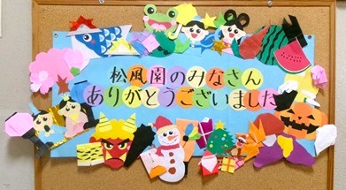 実習最終日には手作りの素敵な壁面装飾をいただきました。12か月の季節行事にちなんだモチーフが施された装飾です。園内に掲示させていただきました。ありがとうございました。