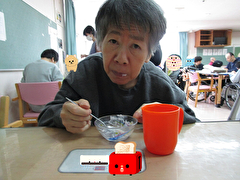 3月10日に、おやつレクとしてフルーチェ作りを行いました。利用者の皆さんには材料を混ぜる工程等を楽しんでいただきました。できあがったフルーチェは、果物の甘さが広がり、とても好評でした。 和やかな雰囲気の中で、楽しいおやつの時間を過ごすことができました。