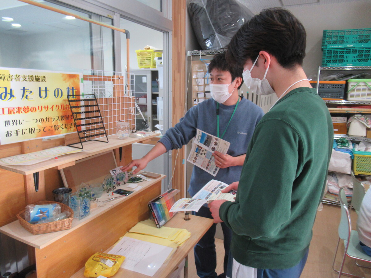 令和8年1月23日、仙台大学体育学部の方1名に、「1day仕事研究」に参加いただきました。障害者支援施設「みたけの杜」の施設見学や概要説明に加え、日中活動を体験したり利用者(児)と触れ合っていただきました。