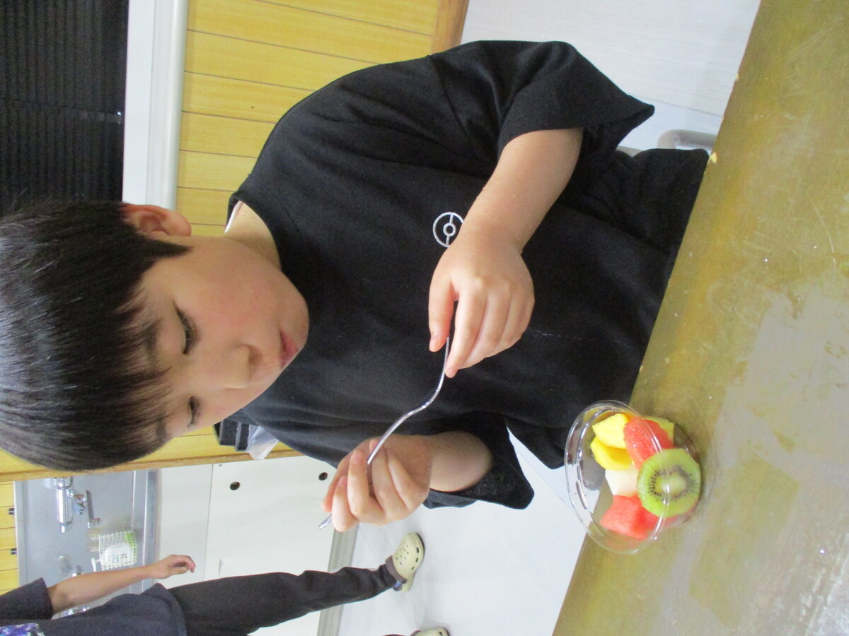 わんぱくホールで学園おもちゃ教室を開催しました!みんな広い場所でのびのびと、力いっぱい描いてくれました🖋 午後はおやつにフルーツを食べました😊