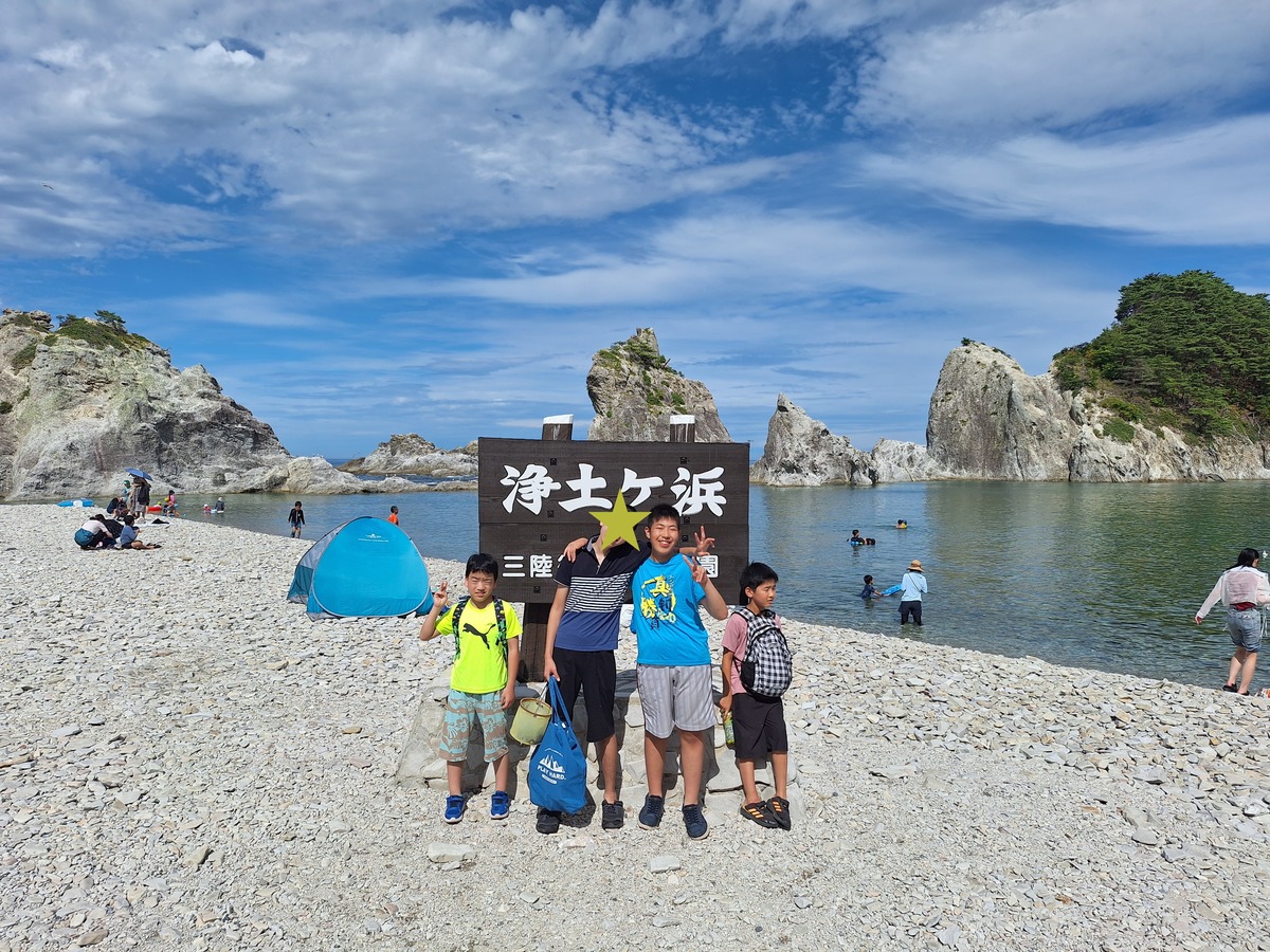 きらめきエリアの夏休みの様子をお伝えします。今回は海へドライブした際の様子を紹介をします!! 宮古市にある浄土ヶ浜へドライブしました。いい天気に、綺麗な海が最高に映えました✨ 初めて見るウミネコに利用者さんはビックリで、えびせんを投げると沢山のウミネコが寄って来ました☺ 利用者さんからは、「海綺麗だった!」、「ウミネコ可愛かったけど何でえびせんが好きなんだろう?」と様々な感想がありました。