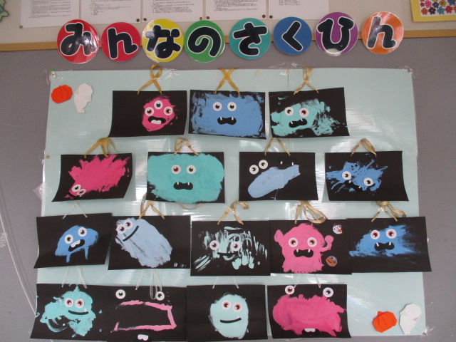 10月の壁面装飾は、ハロウィンにちなみ、色々な形のお化けを作りました👻手や足を描いたり、縦や横に長いお化けを描いたりと、みんな思い思いの個性的なお化けを作ってくれました!バックになっているので、みんなでお菓子を貰いに行きたいと思います🍪