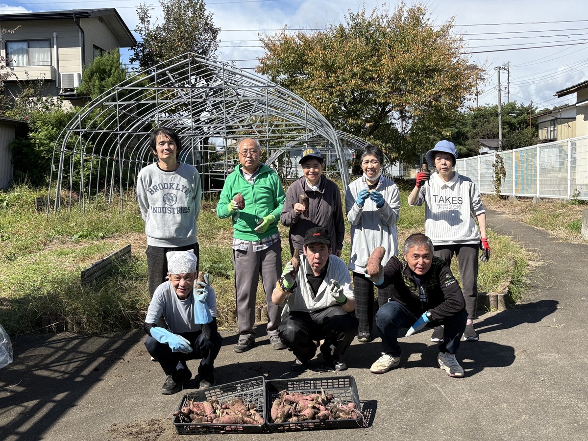 先日、さつまいもを収穫しました! 苗の植え付けから収穫まで、受託作業するープのみなさんで成長を見守ってきました。当日は、土の香りや季節の移ろいを感じながら掘り起こしたさつまいもに、自然の恵みと温かな笑顔が溢れていました😆
