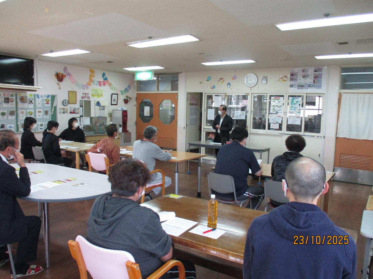 りんどうは中山の園グループの中でも特に多くの高齢障がい者の方々が生活されております。職員もですがご家族の皆さんも利用者の皆さん(ご家族にとっては家族)とのさまざまな形での「別れ」により悲しみや迷いを抱えることも避けられない場面もあります。10月の職場研修は家族会と合同で『心の元気を取り戻す~自らの感情を受け止め越える力を身に付ける~』とのテーマで株式会社赤澤号の赤澤徳俊氏を講師にお招きし開催しました。グリーフケアにも触れながら、ペアワークでは「苦しみ(思いや悩み)を伝える」「寄り添い傾聴する」ことを体験、自分自身との心とも向き合い、無意識に心が動く有意義な研修となりました。