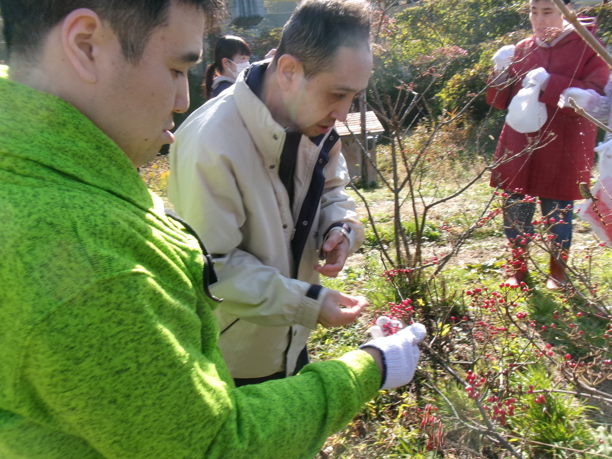 昨年に続いて、高松第三行政区ふるさと地域協議会福祉農園様からお誘いをいただき、利用者の皆さんでガマズミ、ナツハゼの実の収穫体験を行いました。 利用者さんは農園の方にお会いすると、元気良く挨拶をし、説明をよく聞いて収穫をしていました。収穫したガマズミとナツハゼは、今後給食と創作活動に出てくる予定です♪
