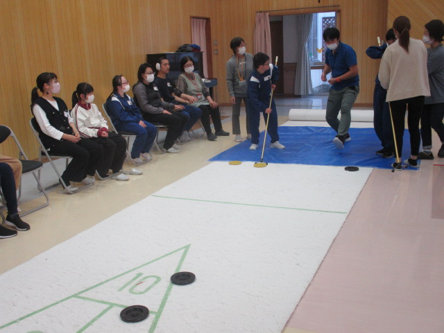 皆さんは「シャフルボード」って知っていますか?キューでディスクを押し出すようにシュートするカーリングのようなニュースポーツです!昨年度、はばたきの親子交流会で大盛況であったことから、今年度も県南青少年の家の方を講師に迎えてみんなでシャフルボードを楽しみました🎵「お父さん頑張れ~」という声援が聞こえたり、ハイタッチをして喜び合ったり…みんなでワイワイと盛り上がりました。「応援を通して皆さんの顔や名前を覚えることができた」「普段見られない子どもの成長を見ることができ感激した」等の感想をいただきました♡
