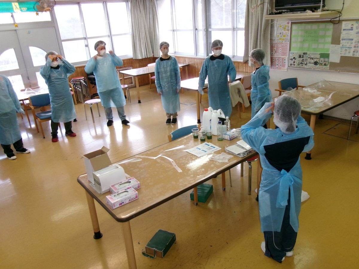 感染症が増えてくる時期…💦 ということで、今月の職場研修は「感染症対応について」寮棟の医務担当者が講師となり行いました。実際にガウンを着て、嘔吐があった時の対応等について確認しました。吐しゃ物処理やガウンの脱着にも順番があり、忘れないためにもこういった研修を行っています😷