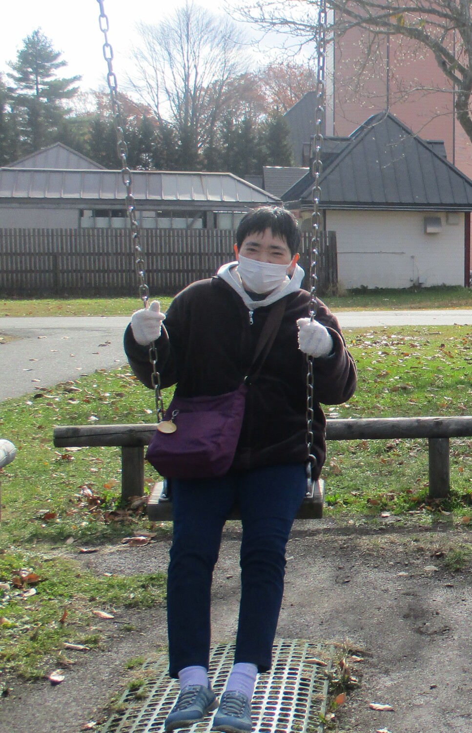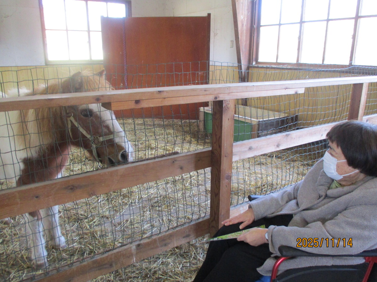 目的別外出のグループで、今年も小岩井農場に行ってきました。今回は馬や羊などの動物たちと触れ合うほかに、遊具でのびのびと遊んできました。ブランコやすべり台で思いっきり遊び、秋空の下でリフレッシュすることができました。お腹も心もいっぱいになり、とても楽しいひとときでした。来年もまた一緒に行きたいですね。