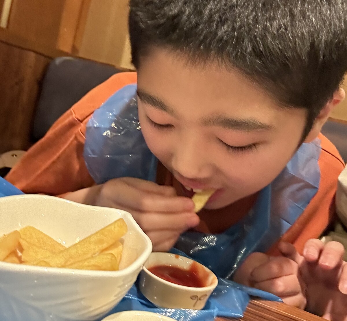 【てしろもりの丘よつば】彩・森ユニット 外食に行ってきました! 2025年12月25日掲載 大きなひとくち! ポテトに夢中❤ 12月13日の夕食時に外食へ行ってきました!自分でメニューを選び、落ち着いた様子で食事をすることができました。 外食ならではの経験を通して、楽しい時間を過ごしました。 お知らせ一覧へ