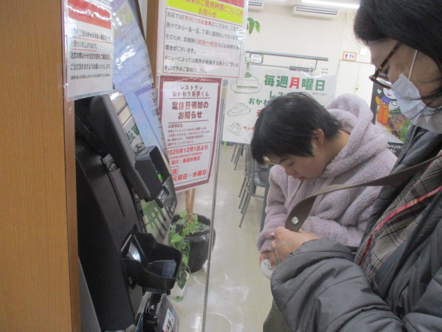 外食って大人でもちょっぴりワクワクしますよね♡この冬は、産直来夢くんにみんなで昼食を食べに出かけました~!!メニューを選ぶ段階からどれにしようかな?どれにしようかな?とみんなウキウキ♡自分の食券番号が呼ばれるまで落ち着いて待ち、ほとんどの児童がしっかりと完食しました。お腹も心も満たされた良い時間となりました(*^^)v