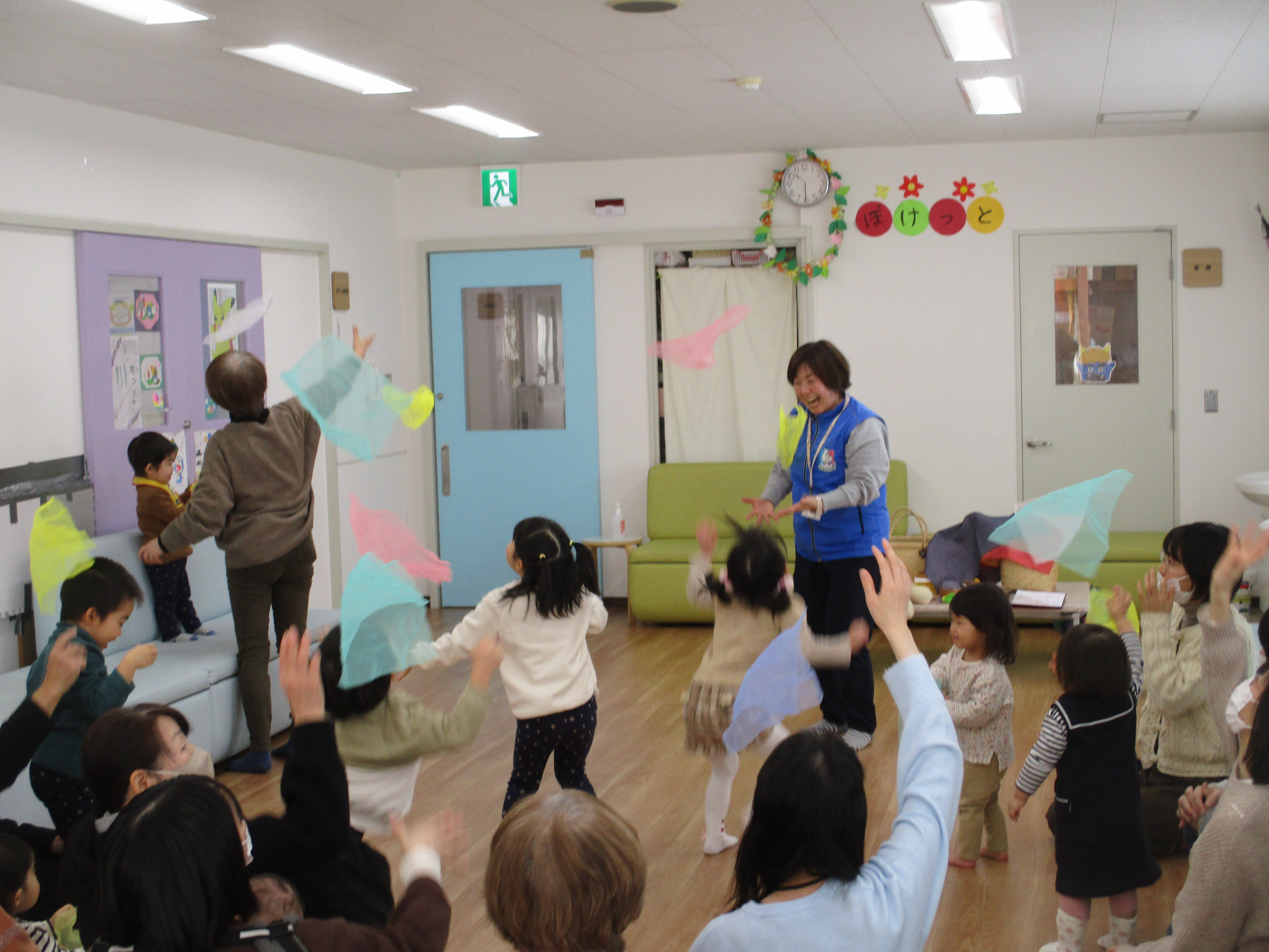 去る1月31日(土)におもちゃ図書館ふらねで「親子ふれあい交流イベント~あそぼう!つくろう!おもちゃ広場」を開催しました。一戸町の子どもの森のプレーリーダーのゆっきいと一緒に、0歳から5歳までのお子様9人とお父さん・お母さん11人が、わらべ歌遊びやリングトイ・手作りロケット・紙皿こまなどを作り、親子で元気いっぱい、楽しみました。参加された方から「あっという間の時間でした。年齢問わず楽しむことができました。また、参加したいです。」との感想をいただきました。ありがとうございました。