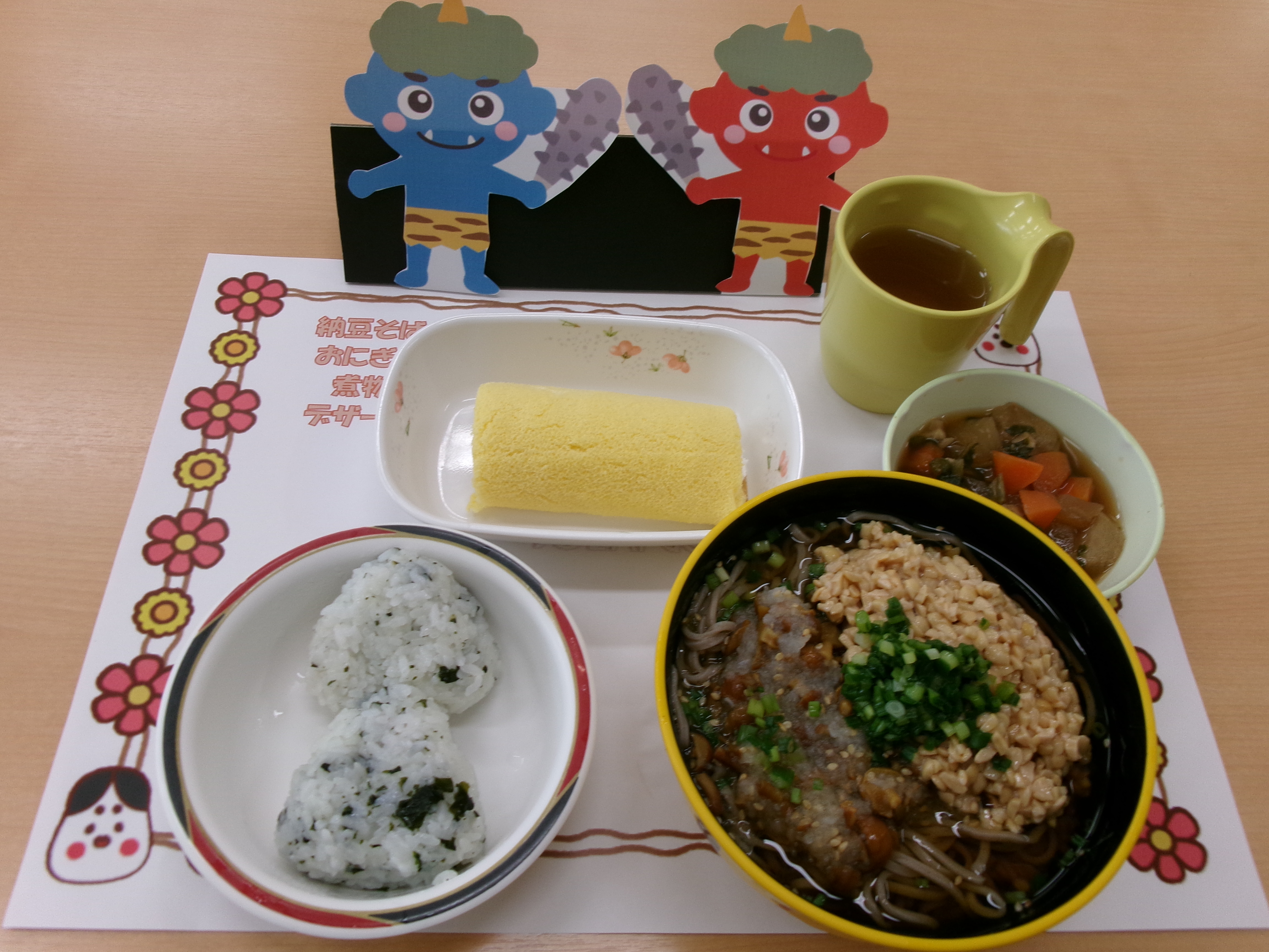 今年の節分メニューは納豆そばでした。『節分そば』は、江戸時代に広まった風習で、旧暦の新年である立春の前日に、厄除けや長寿を願って食べるそばです。麺が切れやすいことから厄落とし、細く長いことから長寿の意味が込められているということです。