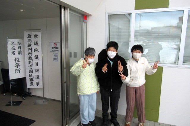 2月6日(金)、ビックルーフ滝沢にて衆議院議員総選挙の期日前投票に行ってきました。投票を希望された14名全員が、真剣な様子で投票用紙に記入し、投票箱に入れていました。投票が終わると「投票したよ~。」、「ちゃんと書けた。」と教えてくれました。