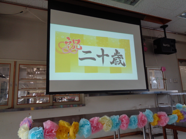 2月17日(火)、自治会主催で「二十歳を祝う会」を開催し、今年度二十歳を迎えられる2名の利用者様をお祝いしました。