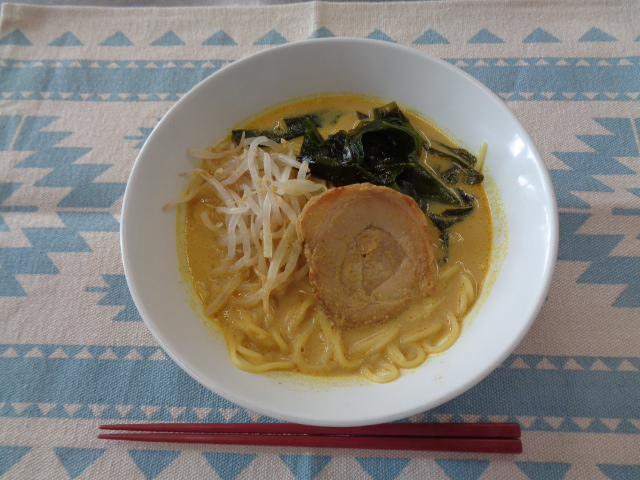青森市で札幌ラーメンの人気店で、中高生が「味噌ラーメンにカレー粉と牛乳を入れて食べると抜群に美味しい」ということを発見し誕生したメニューとのこと。今回は青森県出身の栄養士が調理したこともあり本場の味を楽しむことが出来ました。