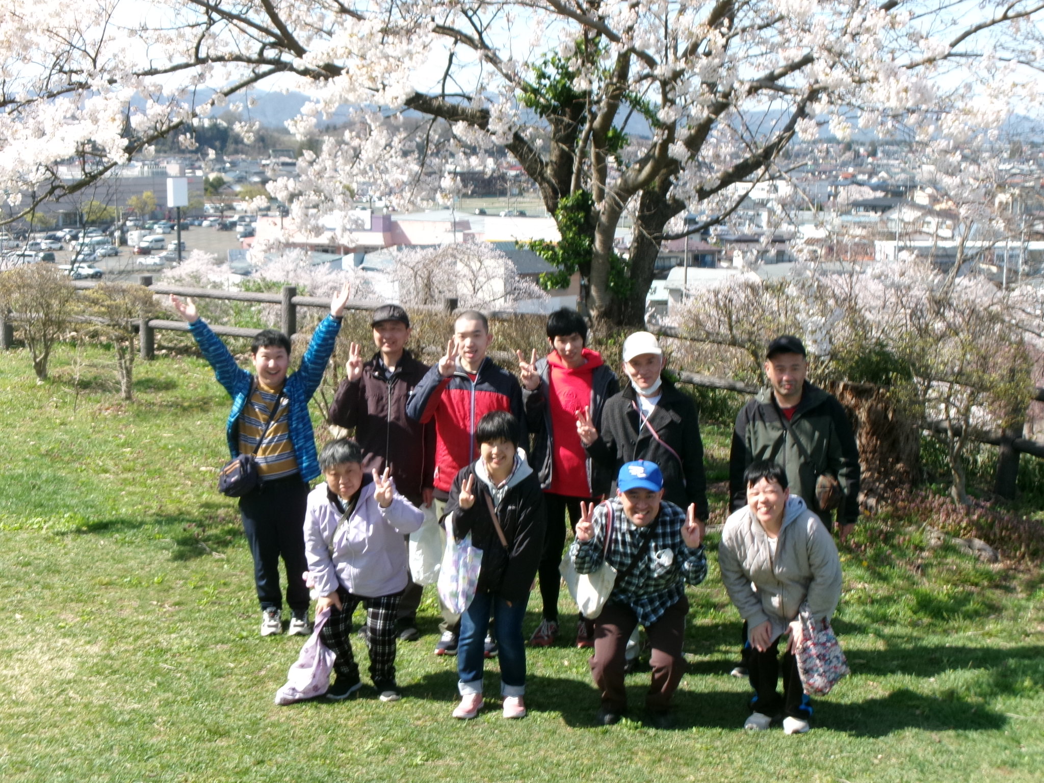 春の柔らかな日差しの中、2グループに分かれて花見を楽しみました。鳥谷崎公園の満開の